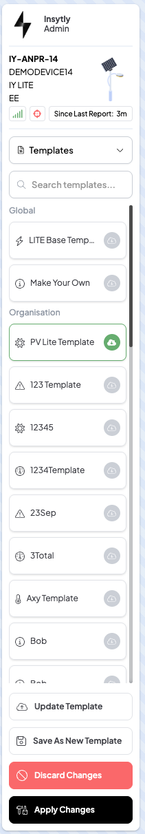 - Select your desired template, and it will be loaded onto the device when it is added to your organisation.