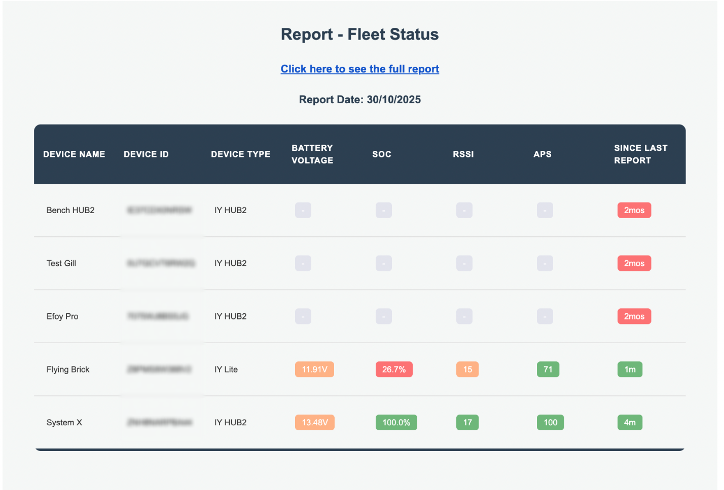 Data Freshness: The emailed report is a snapshot of the data available at the exact time it is sent. We highly recommend adding a "Last Report Timestamp" component to your report dashboard. This ensures everyone who receives the email knows exactly when the data was last read from your unit.